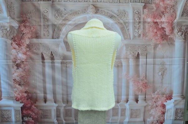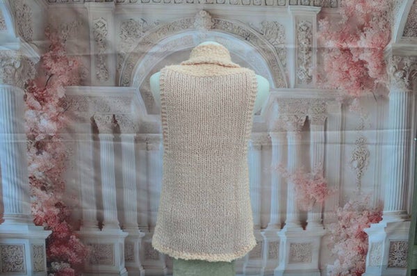 Dit prachtige hand gebreide vest is gemaakt van zacht garen. Het heeft een parelmoer knoop waardoor het er elegant uitziet. Warm in de winter. Roze en crème kleuren.